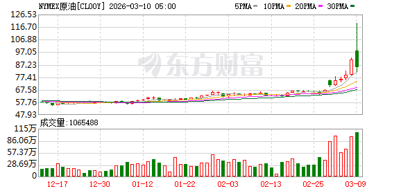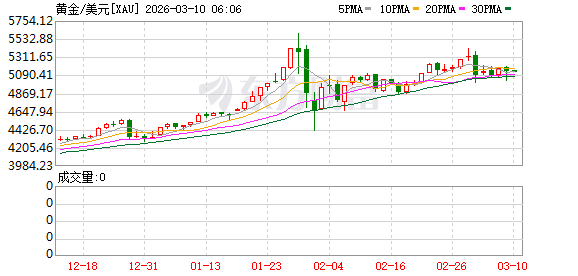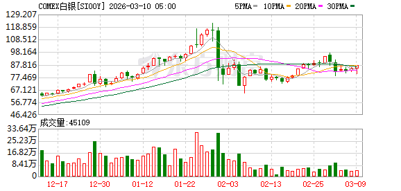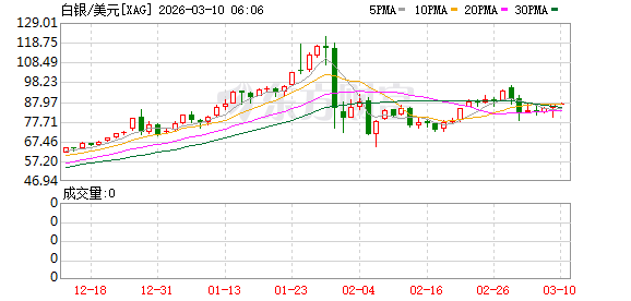 商品市场:国际油价03月09日下跌。截至当天收盘,纽约商品交易所WTI原油期货当月连续合约下跌5.82美元,收于每桶85.08美元,跌幅为6.40%。COMEX黄金期货当月连续合约下跌10.00美元,跌幅0.19%,报5148.7美元/盎司。COMEX白银期货当月连续合约上涨3.03美元,涨幅3.60%,报87.345美元/盎司。现货黄金下跌34.31美元,跌幅0.66%,报5136.81美元/盎司。现货白银上涨2.59美元,涨幅3.07%,报86.96美元/盎司。