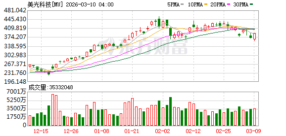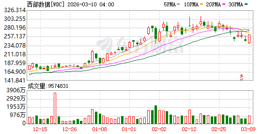 存储概念股大涨,闪迪涨超11%,西部数据涨超6%,美光科技涨超5%。