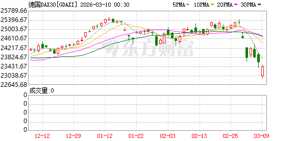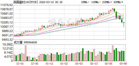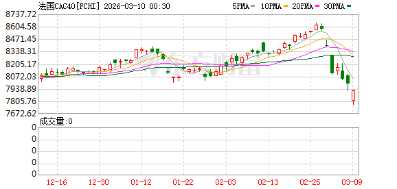 欧股市场:欧洲三大股指03月09日全线下跌。英国伦敦股市《金融时报》100种股票平均价格指数报收于10249.52点,较前一交易日下跌35.23点,跌幅为0.34%;法国巴黎股市CAC40指数报收于7915.36点,较前一交易日下跌78.13点,跌幅为0.98%;德国法兰克福股市DAX指数报收于23409.37点,较前一交易日下跌181.66点,跌幅为0.77%。