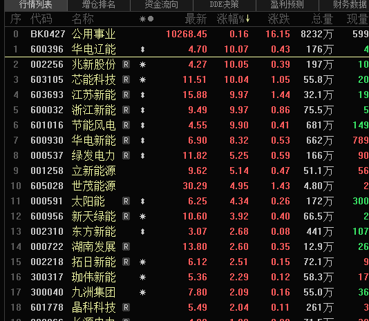 近期,公用事业、交通运输、食品饮料、银行等板块表现较为强势。公用事业板块中的华电辽能、兆新股份、芯能科技、江苏新能等多股涨停。